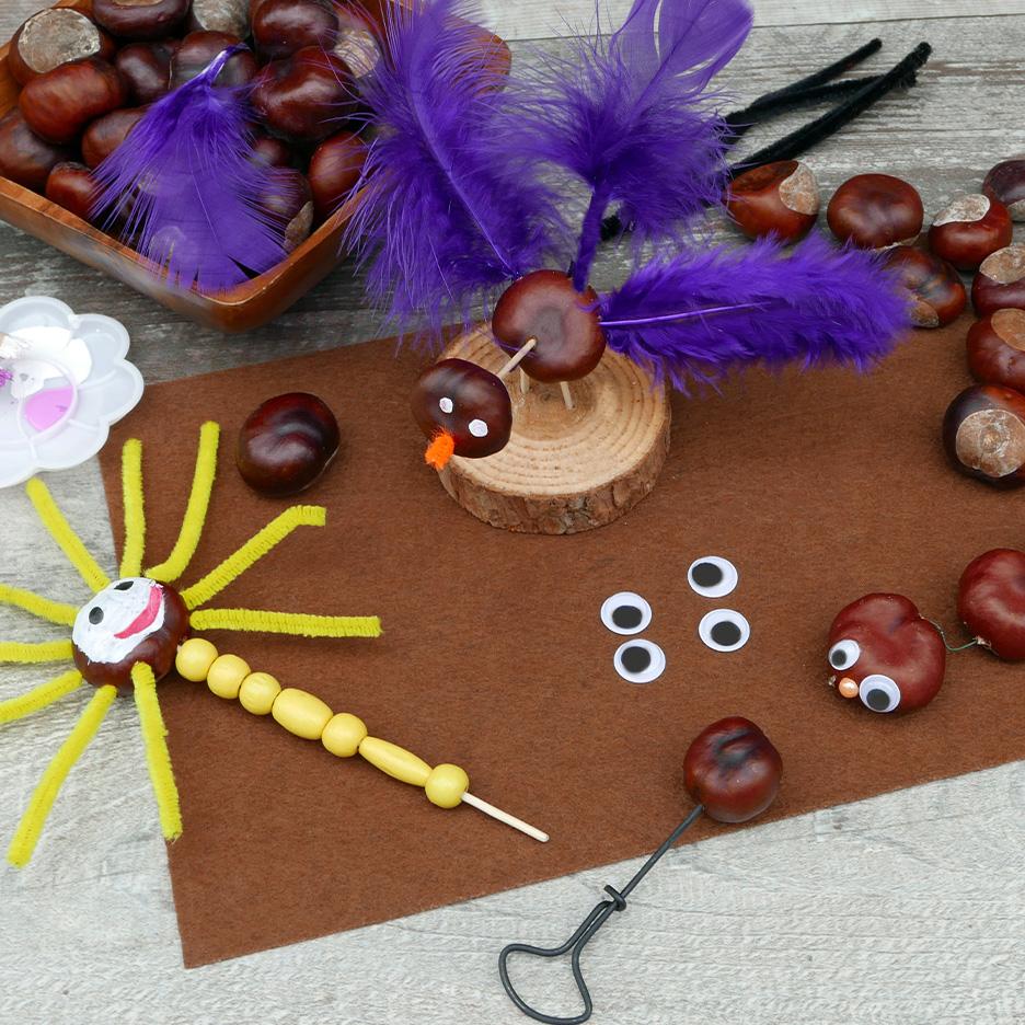 Idées de bricolage d'automne à reproduirePour les petitsLes feuilles d'automne colorées sont des matériaux polyvalents. Avec ton enfant, crée une image de la nature, colle les feuilles sur une feuille de papier et, avec un peu de peinture, transforme-la en une véritable œuvre d'art. Les châtaignes conviennent également très bien : Plantez-y des bras et des jambes à l'aide de cure-dents, collez-y des yeux vacillants et ajoutez des petites queues ou des antennes avec des cure-pipes pour en faire des hérissons, des chenilles ou des petites créatures imaginaires qui se prêtent parfaitement au jeu. Les coques des faînes peuvent être utilisées pour fabriquer des chapeaux ou des jupes. Les capuchons des glands font également de superbes couvre-chefs, des yeux ou des boutons pour vos personnages.Pour les enfants de l'école primaireUn photophore automnal est particulièrement apprécié. Pour cela, tu as besoin d'un simple verre, de papier transparent aux couleurs chaudes et de feuilles séchées. Le tout est appliqué sur le verre avec de la colle et éclairé à la fin de l'intérieur avec une bougie LED. Cela vous apportera une lumière agréable lors des sombres soirées d'automne. Les petites figurines en cônes que vous pouvez décorer avec de la feutrine, des restes de tissus colorés et des matériaux naturels sont également superbes. Fabriquez des hiboux, des souris ou même des petits esprits de la forêt qui mettront de l'ambiance sur le rebord de la fenêtre.Pour les enfants plus âgésUne couronne de porte faite maison avec des branches est une belle décoration d'automne dans votre maison. Nouez les branches ensemble pour former un anneau et décorez-le avec des noix, des pommes de pin, des feuilles et peut-être un joli ruban. Cette magnifique décoration ornera votre entrée et ravira tous vos invités. Un autre beau projet : un mobile en matériaux naturels. Il suffit d'attacher des fils à une branche solide et d'y suspendre des châtaignes, des petites rondelles de bois, des feuilles ou des plumes. Le mobile se déplace facilement au gré des courants d'air et apporte la magie de l'automne dans la chambre d'enfant.